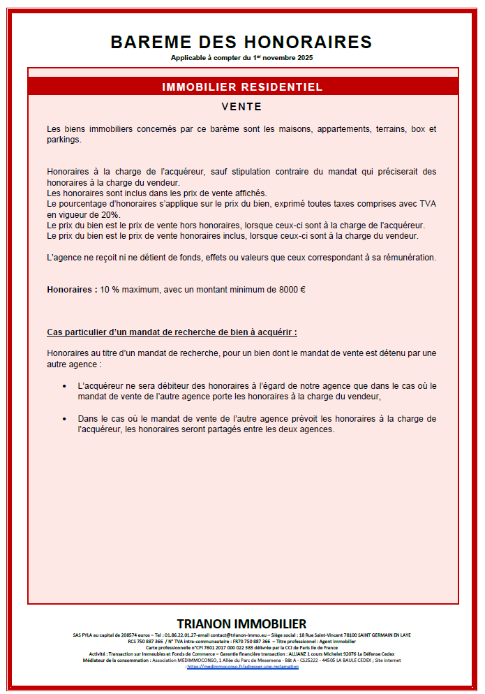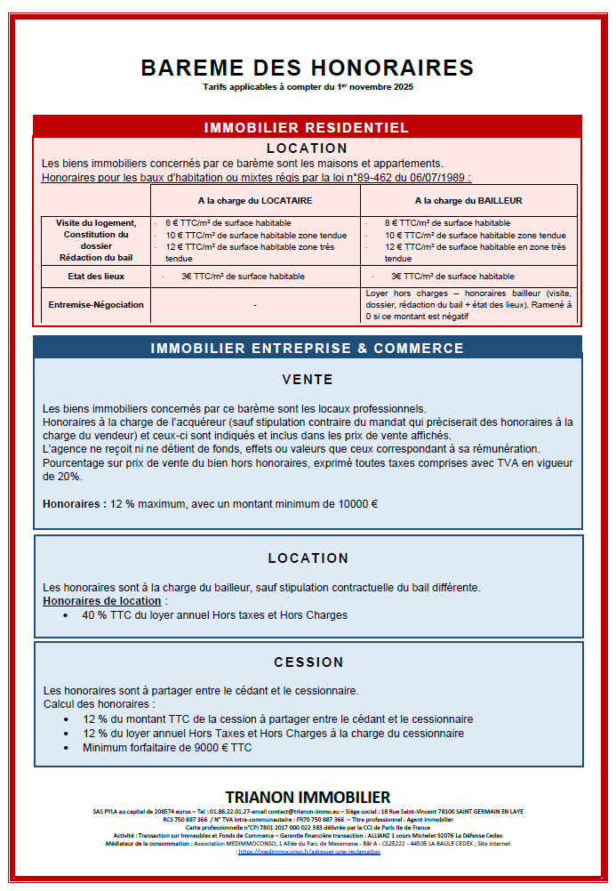 Barème des honoraires