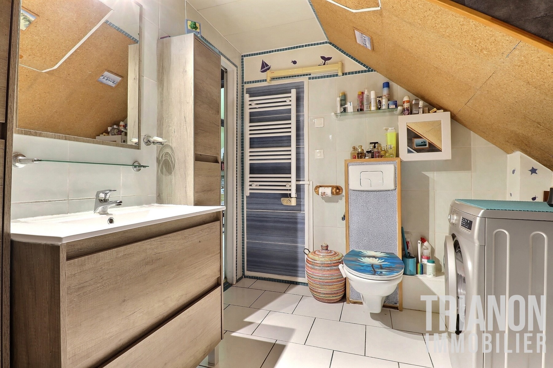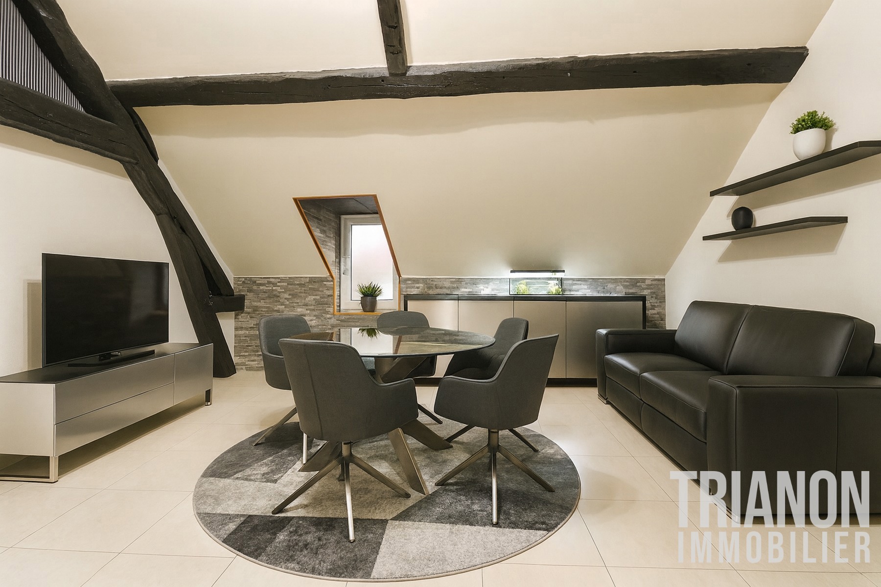 Découvrez ce grand T2 de 65 m² au sol (44 m² Carrez) situé au 2ème et dernier étage d’une maison divisée en trois appartements à Vaux-sur-Seine, un appartement sous comble offrant une superbe hauteur sous plafond qui crée immédiatement une atmosphère chaleureuse et pleine de caractère. La pièce de vie est le véritable cœur du logement avec son grand séjour ouvert sur la cuisine.