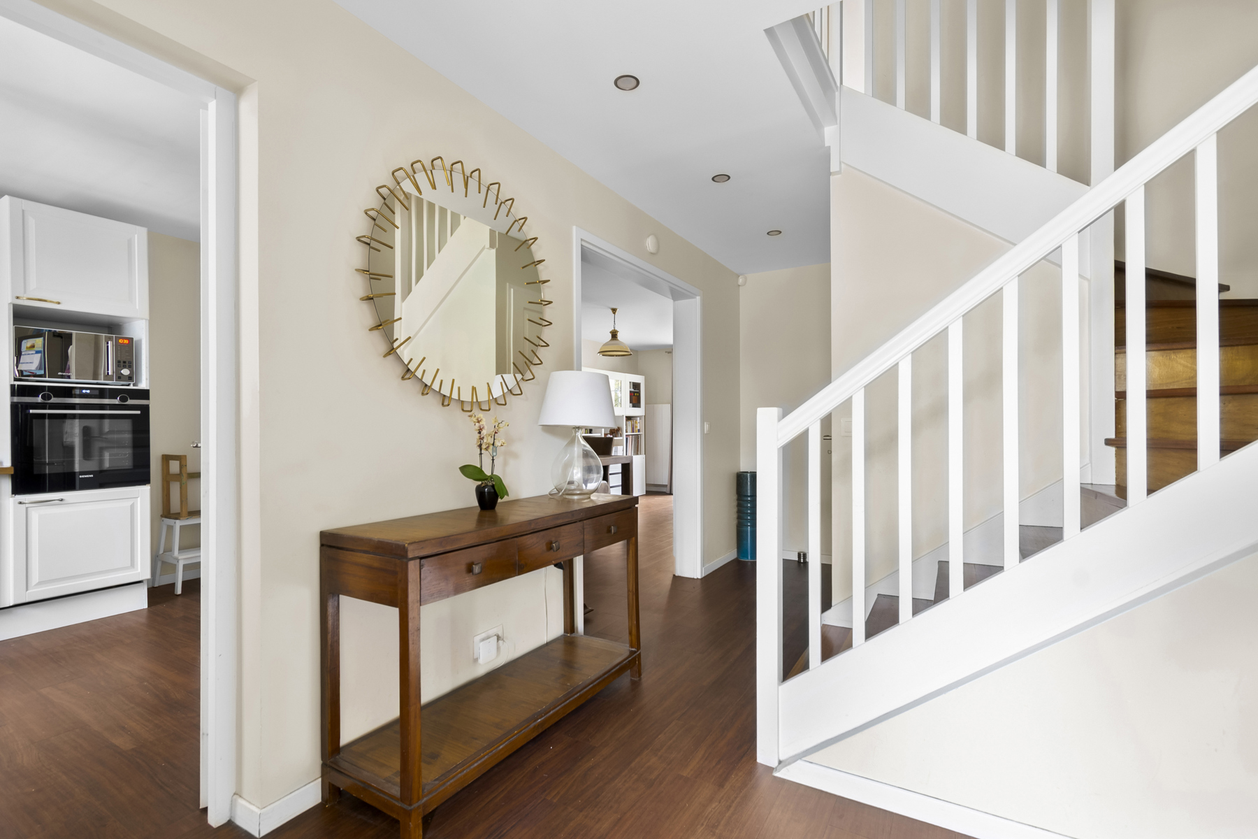C'est une maison à la fois fonctionnelle, chaleureuse et idéalement située. Idéale pour une vie de famille !