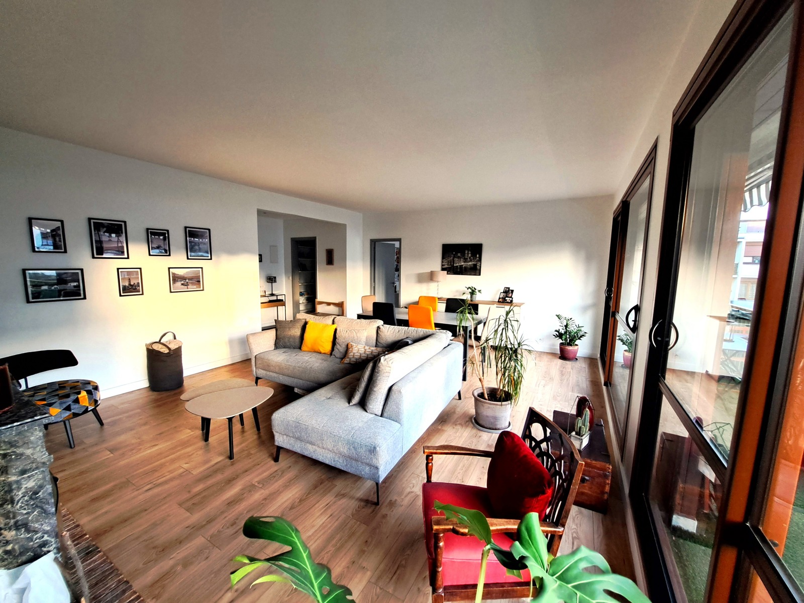 L'appartement bénéficie notamment d'un très beau living room de 32m2 (possible extension de 12m2) avec cheminée, de 4 chambres de belles dimensions, d'une superbe cuisine aménagée et équipée et de deux pièces d'eau (salle de bains et salle d'eau) rénovées avec goût.