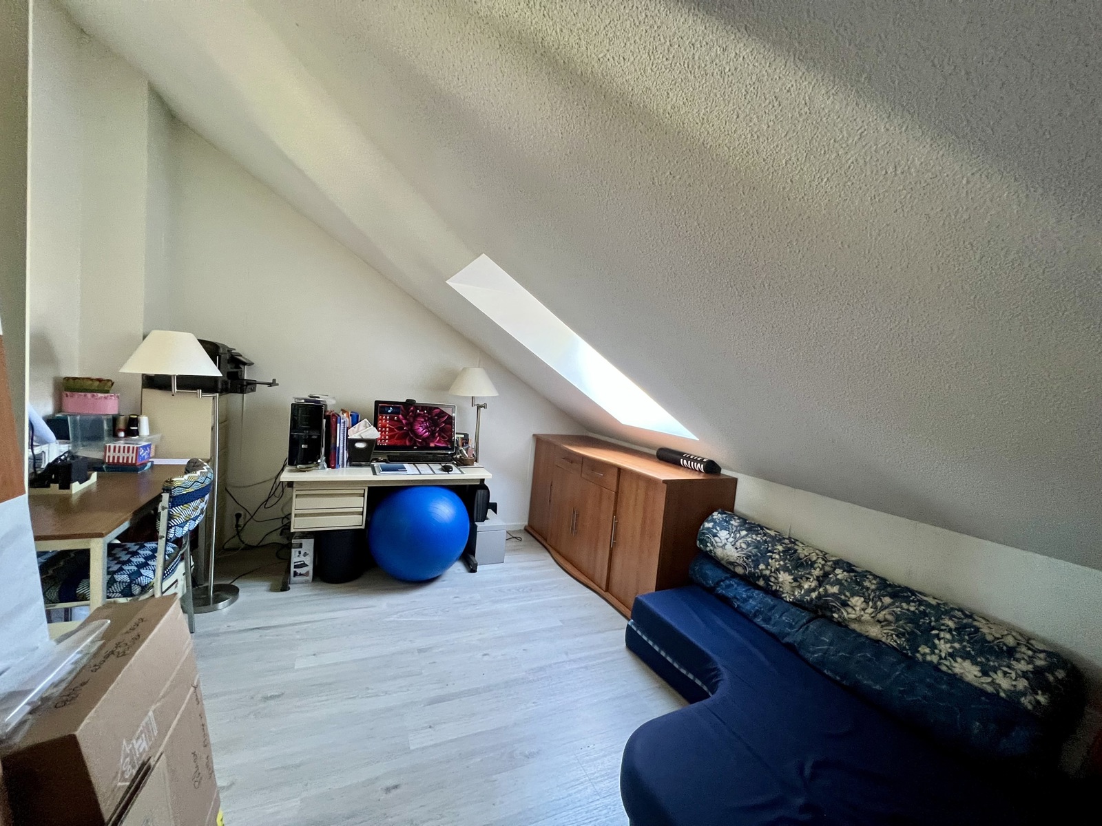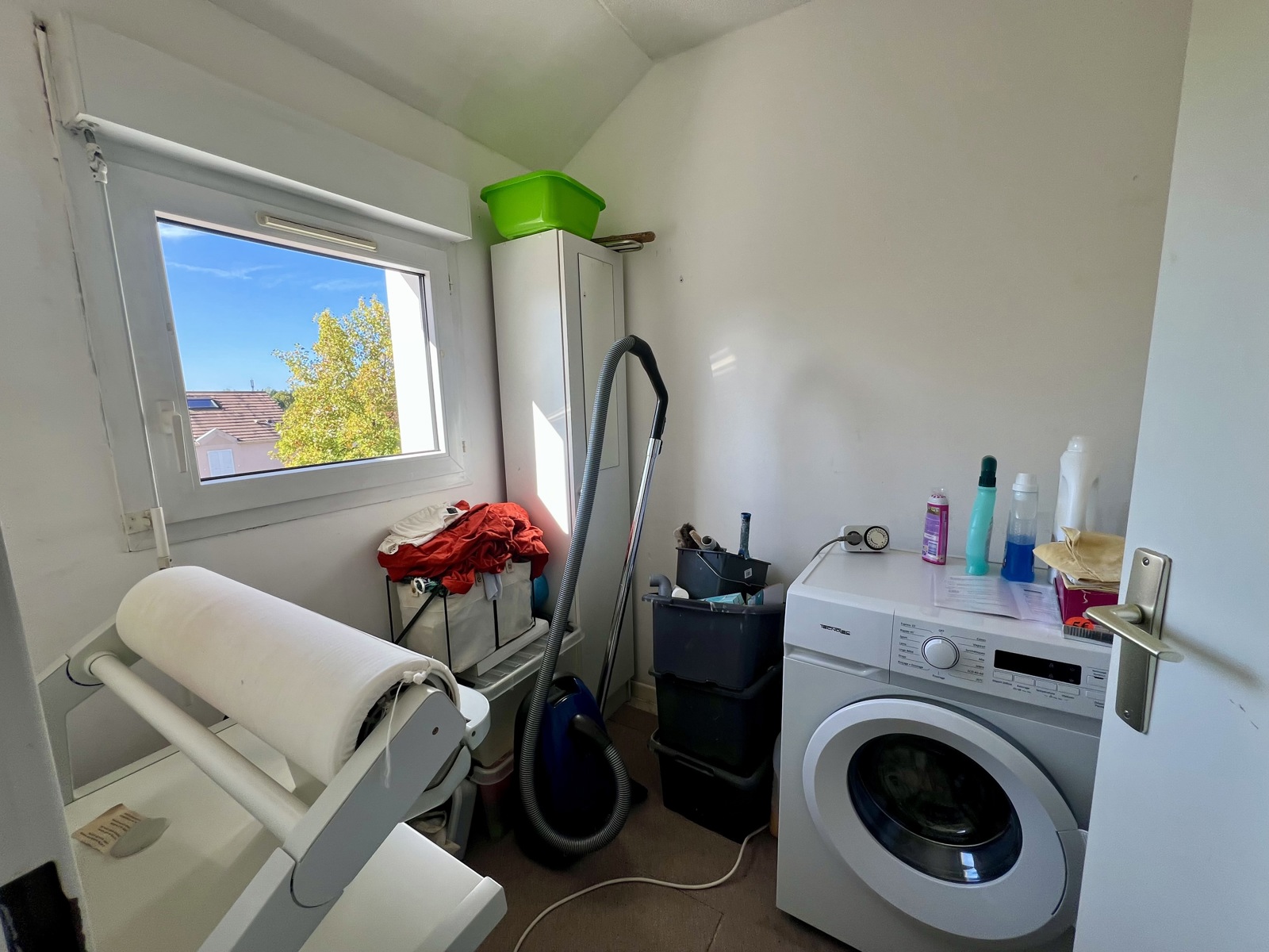 Au deuxième étage, un bel espace aménagé en buanderie et chambre supplémentaire, pouvant facilement devenir une suite parentale.