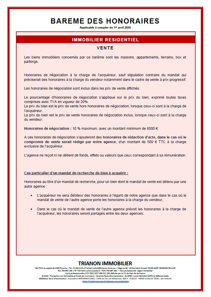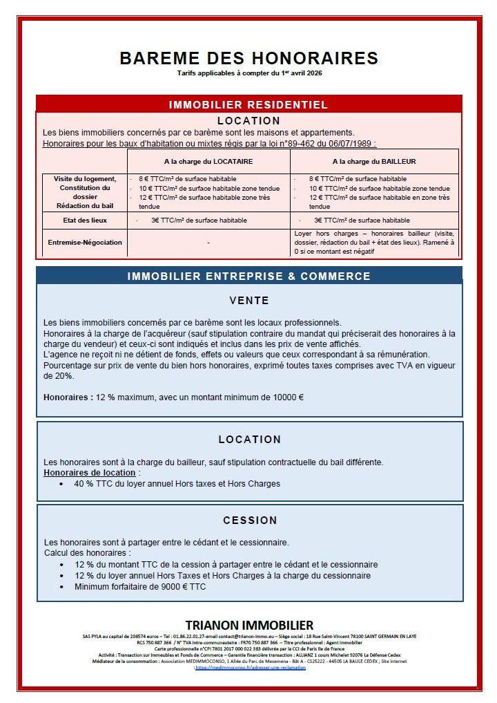 Barème des honoraires
